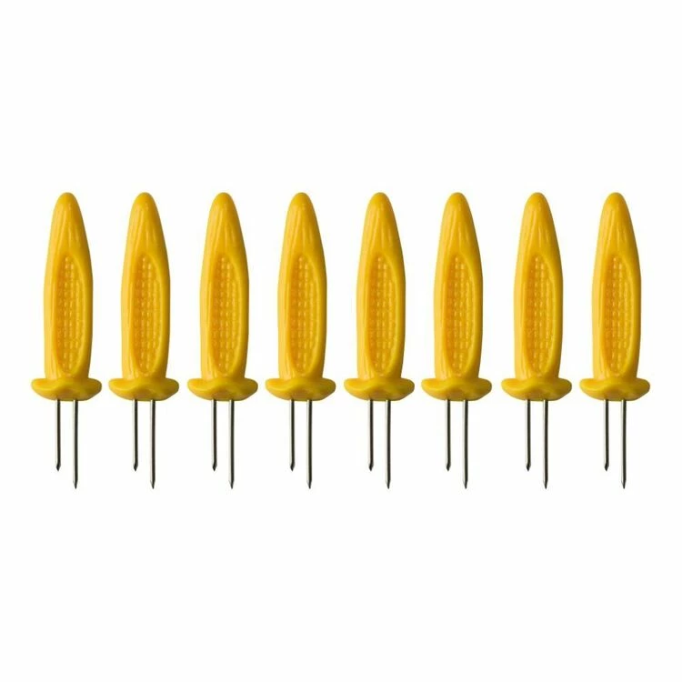 The Avanti® Jumbo Corn Holders protect your fingers from steaming fresh corn. Featuring strong and sharp double metal prongs, they easily pierce corn and are offset to prevent rotation. Durable, large kernel-shaped stay-cool handles provide a secure, comfortable grip.