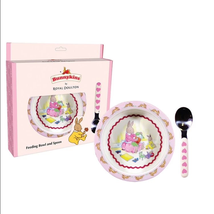 This adorable Bunnykins printed set contains a feeding bowl and spoon. Crafted from premium melamine. Age 18mnths+