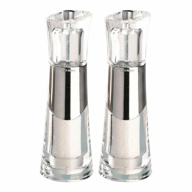 These sleek and slender acrylic mills by Cole and Mason will add a contemporary look to any table, whilst remaining an everyday kitchen tool. The spring-loaded mechanism is adjustable to grind fine to coarse granules. Features a hardened carbon steel mechanism for pepper, and a diamond sharp ceramic mechanism for salt. The Cole and mason precision mechanism does not crush peppercorns, but strips them to release maximum flavour with each turn. The clear body allows you to easily see fill levels.