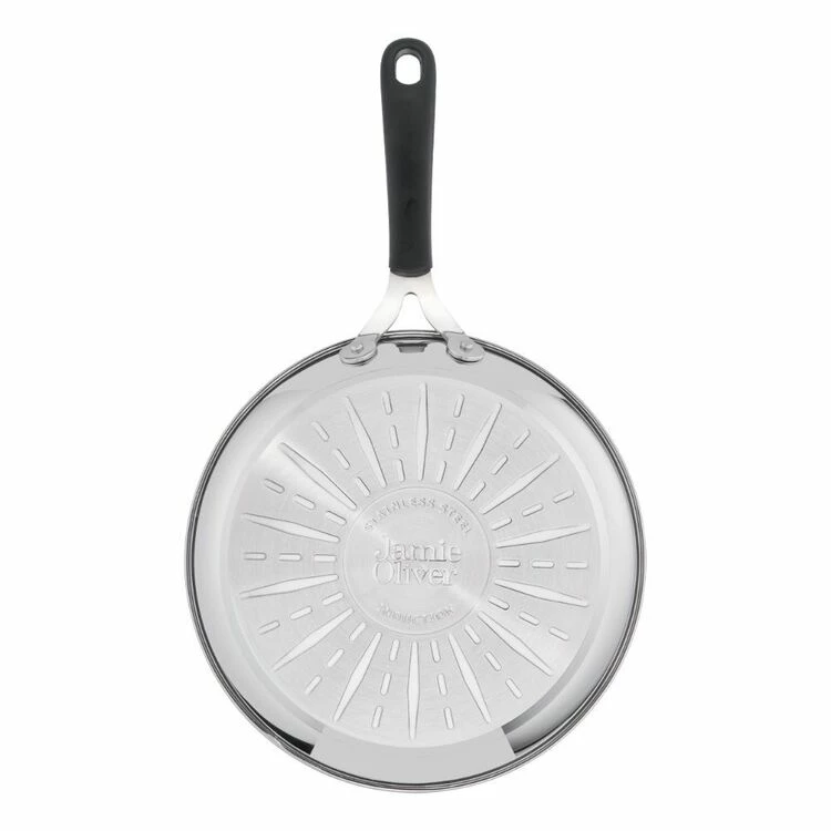 The JAMIE OLIVER by Tefal Kitchen Essentials Stainless Steel Frypan 24 cm is stylish stainless steel that is perfect for hob-to-table dining, as it looks as good as it cooks. Not only is the pan non-stick, it’s super-durable, taking any knocks in its stride, and making cooking even more enjoyable. Designed by Jamie Oliver: “This is the frying pan I reach for most often when I’m cooking ” it’s a brilliant size, top quality, and super-versatile. From restaurant-quality steaks to chicken korma, it will serve you well in the kitchen.”