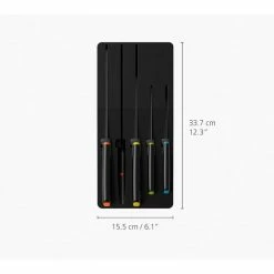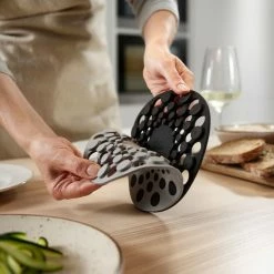Cut&Carve Plus is the double-sided, multi-function chopping board. It has an integrated meat grip on one side of the board and angled cutting surfaces and easy-pour corners, which help in the collection and disposal of liquids or food when cutting or carving. The opposite side of the board provides a smooth cutting surface, for general food preparation. It also has non-slip feet and soft-grip sides. Available in a range of colours and sizes.