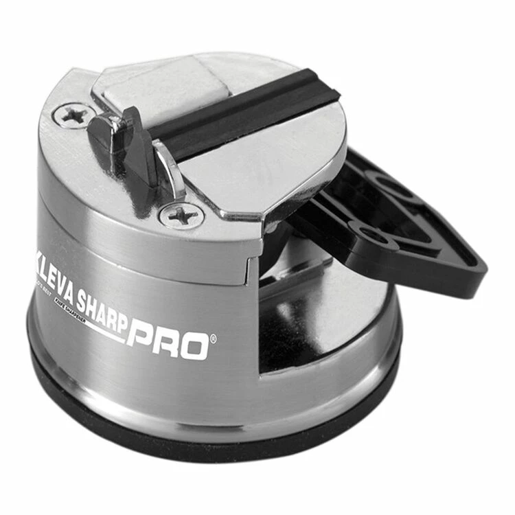 The Kleva Sharp Pro Knife Sharpener will bring new life to those old, blunt knives, leaving them sharper and shinier than ever before! Featuring a new durable metal design and strong suction cup base, simply fasten the Knife Sharpener in place on your kitchen counter and get sharpening. Crafted with professional grade tungsten carbide sharpening blade technology, this sharpener has been pre-set at the optimum sharpening angle to sharpen even the dullest blade.
