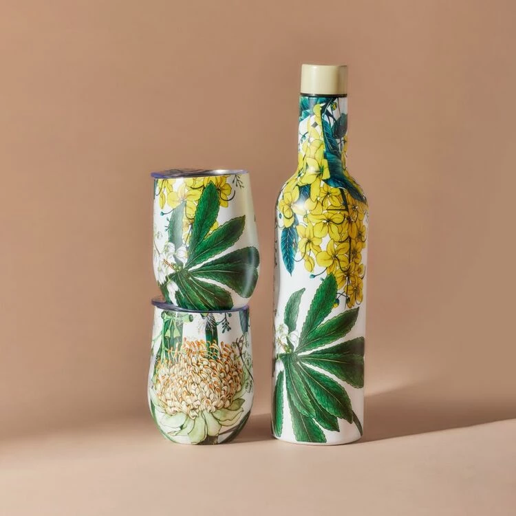 Get set for summer with the 3-piece insulated Maxwell & Williams Golden Summer Double Walled Stainless Steel Wine Set. Created in collaboration with Sydney artist ‘the Blck Pen’, it features a contemporary floral design. This stylish set includes a 750ml leakproof insulated bottle and two 350ml insulated tumblers. Made from quality double-wall stainless steel, it�s the perfect way to keep your drinks cool for picnics and adventures.