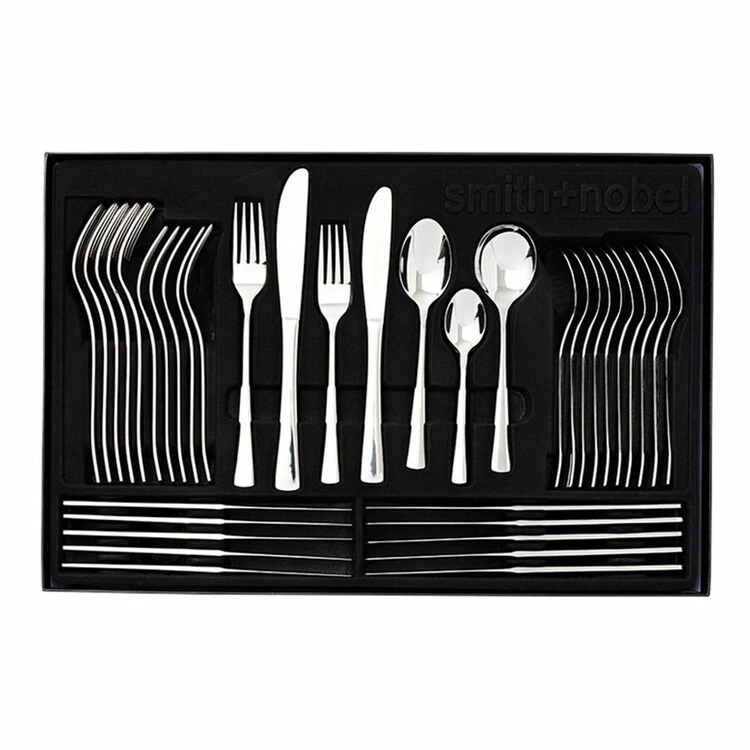 Enjoy delicious meal after delicious meal with this Smith & Nobel Crawford 42-Piece Cutlery Set. With its 18/0 stainless steel body, crafted for comfort, and a sleek design, this cutlery set is a must have for any modern home. Smith & Nobel cutlery is made from high quality stainless steel which will retain its shine, shape and ease of use for years to come.