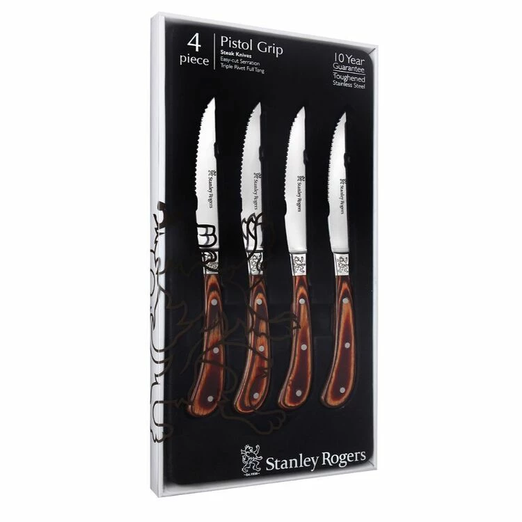 Our iconic Pistol Grip design reimagined in a stunning wood look. Easy-cut serration allows the blade to glide through effortlessly. Full tang and triple rivets gives it strength to last for years. 10 year guarantee.