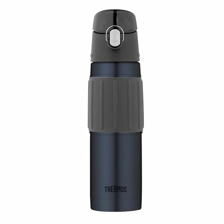 Enjoy your favourite beverages for longer on-the-go with the Thermos Vacuum Insulated Hydration Bottle with Hygienic Flip Lid 530ml Midnight Blue. Crafted with Thermos vacuum insulation technology for maximum temperature retention, it has a durable stainless steel interior and exterior, ideal for traveling and those always on the move. This hydration bottle also features a hygienic push button sipper lid with locking ring for your piece of mind.
