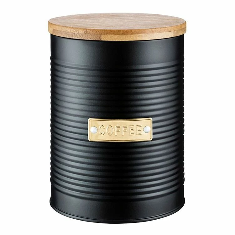 | Features | Living coffee canister in blackHard wearing and durableHigh quality manufactureAirtight sealStrong seamless constructionBamboo wood lid sourced from sustainable forests |